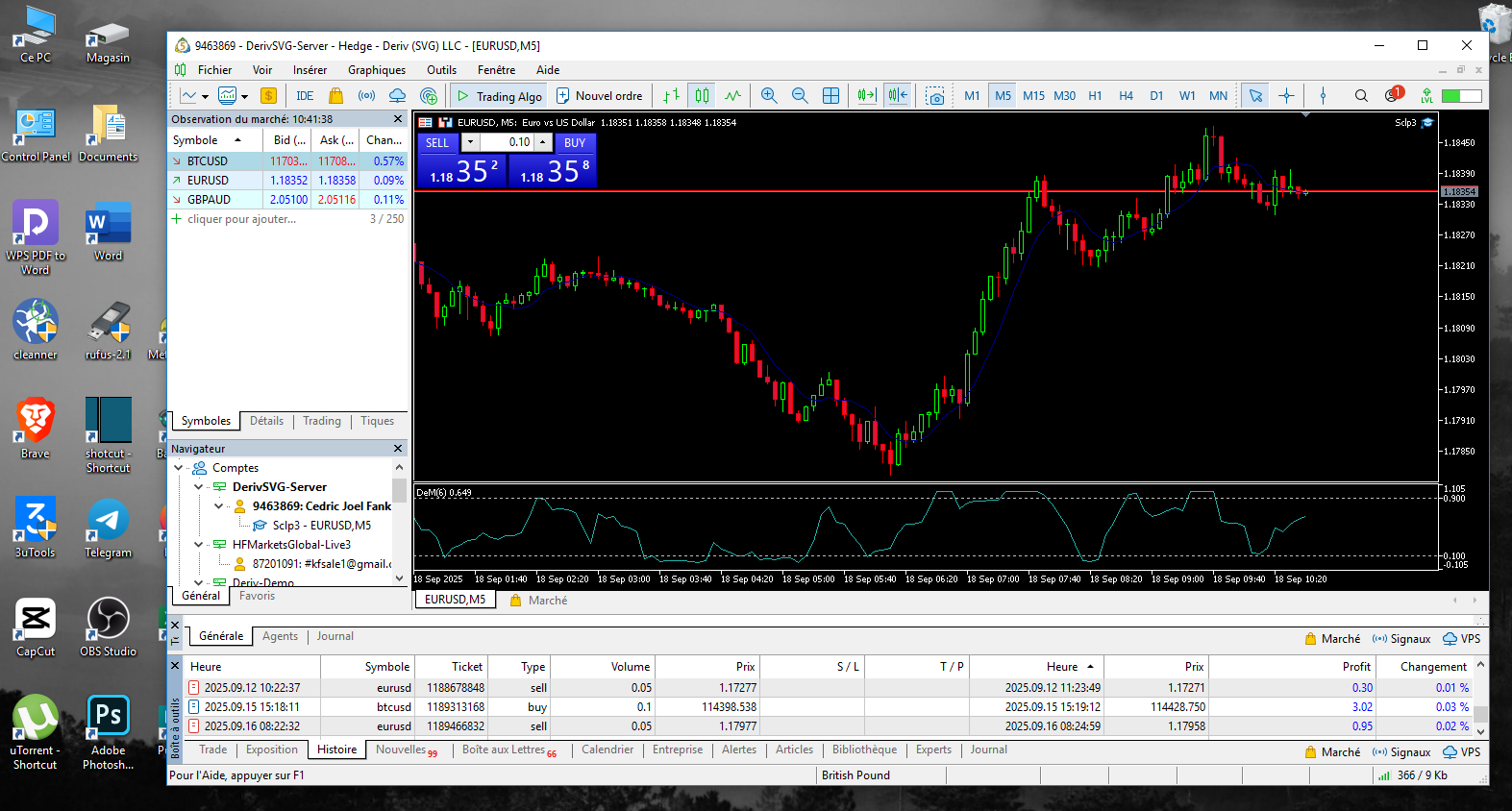 Le robot analyse et trade toutes les paires. (Forex, volatilités, Gold, cryptos)