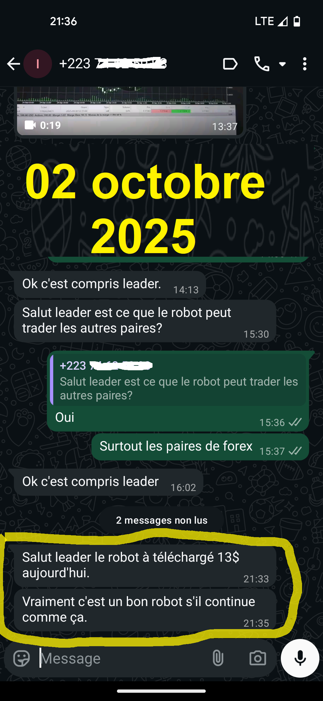 Avec juste 50$ de capital dans votre compte le robot commence à travailler.